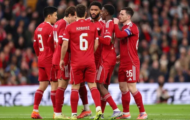 利物浦首发:25-马马尔达什维利、4-范戴克、5-科纳特、12-布拉德利、26-罗伯逊、8-索博斯洛伊、10-麦卡利斯特、38-赫拉芬贝赫、11-萨拉赫、18-加克波、22-埃基蒂克